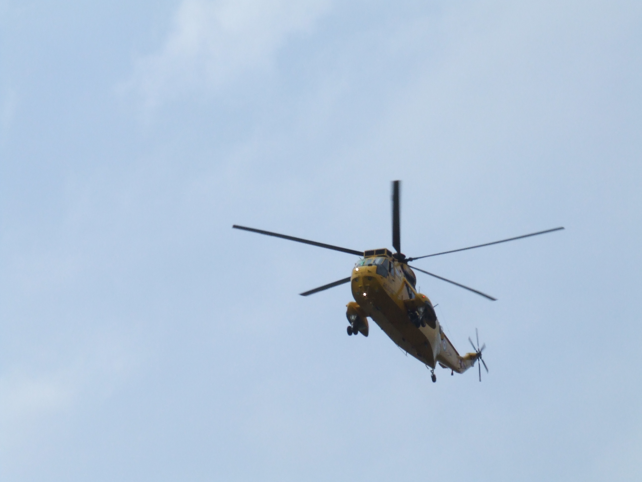 We did have a moment of pause when some 30 minutes after departing the summit, we watched an air-sea rescue helicopter head up towards the summit, and we did wonder if Wayne had taken a turn for the worse. But it turned before it reached the top and hovered over the edge of a lake we had passed on the way down, then turned and headed back over us.