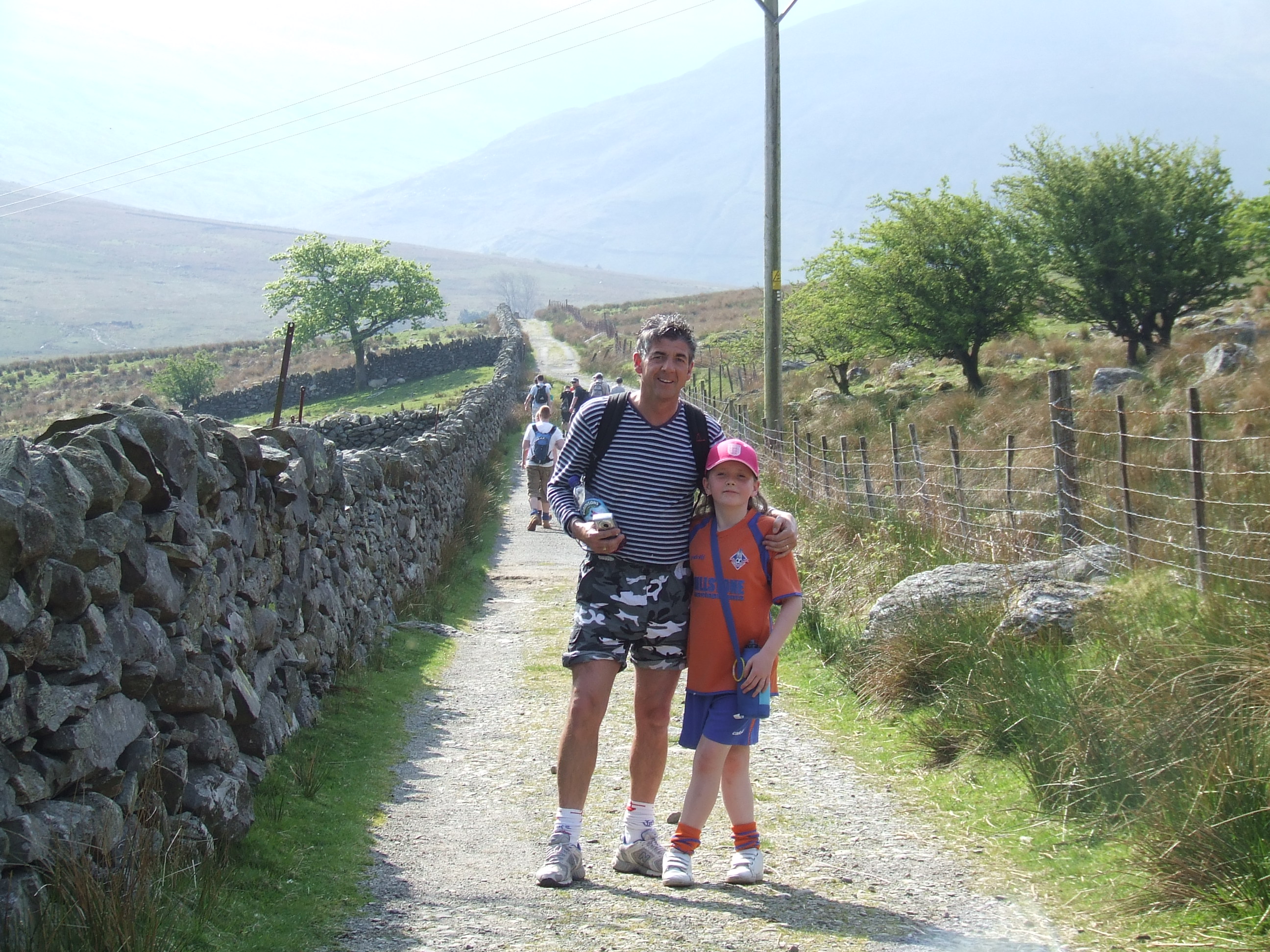 There was a climb of some 200-300 foot to get up. Having walked up the lower valley and swung around to face Snowdon, we had eventually reached this point where the going became quite arduous. The heat wasn’t helping Wayne at all. And this was reflected by his completely bald head and the permanent sheen of sweat that was dripping off it. We were literally stopping every 30 steps or so to allow him to get his breath and his colour really didn’t look good at all. Even the boys were becoming a mite concerned.